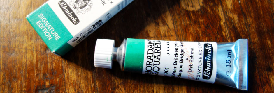 Die besondere Verbindung zwischen Dirk Schmitt und SCHMINCKE wurde nun durch eine außergewöhnliche Zusammenarbeit vertieft: Im Rahmen einer Signature-Edition entwickelte Dirk Schmitt seinen eigenen Farbton, das KÖLNER BRÜCKENGRÜN, das nun Teil der renommierten HORADAM-Aquarell-Serie ist.