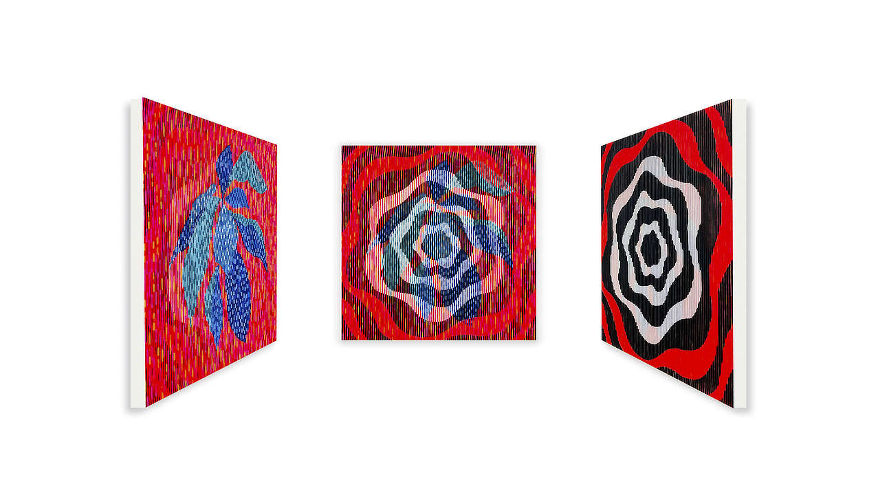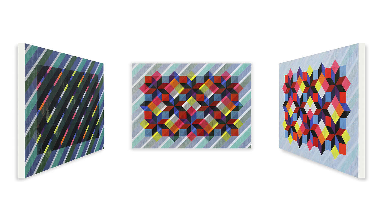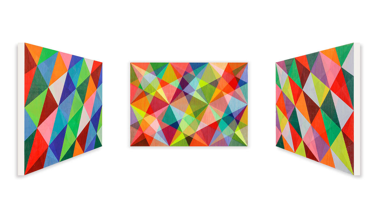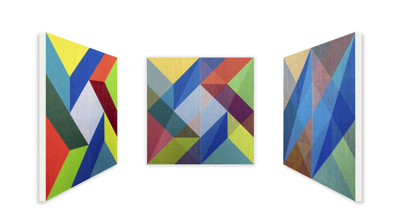 Seine Malerei entfaltet sich dreidimensional und erschließt ihre Wirkung im stetigen Wechsel der Perspektive. In Anlehnung an lentikulare Bildverfahren entstehen unterschiedliche visuelle Ebenen, die sich nicht gleichzeitig zeigen. Das Werk entwickelt seine Präsenz im Raum und im Zusammenspiel mit der Position des Betrachters.